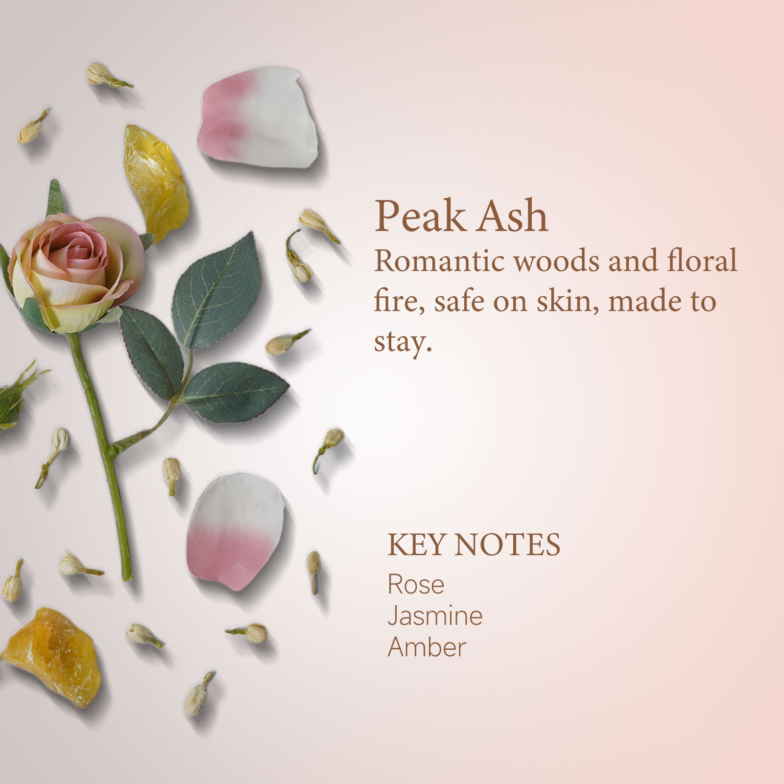 Peak Ash carries the warm clarity of rose and amber—floral, sun-touched, and softly assertive. Spray it before golden hour, before stepping into the room, or before silence turns into conversation. It doesn’t rush, but it stays. A scent made for presence.